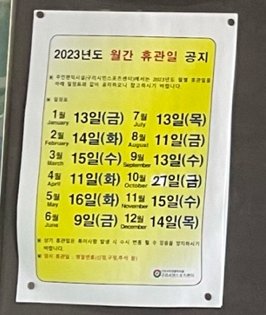 한달에 한번 휴관일이 있으니