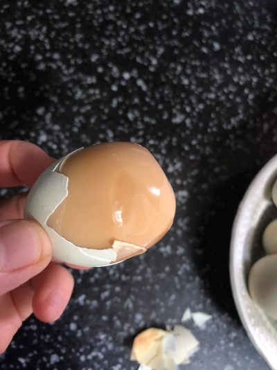 다만 깨진 계란이 있다면, 깨진 사이로 소금물이 들어가서 짜질 수 있습니다.