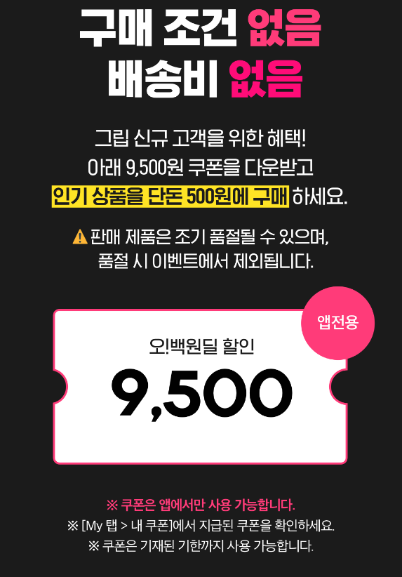다양한 물건을 취급하고 있는 그립에서 500원딜 이벤트를 진행 중입니다.
