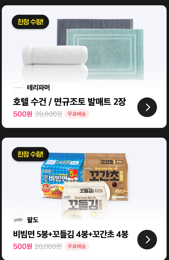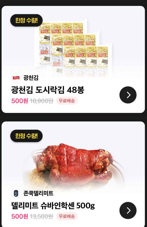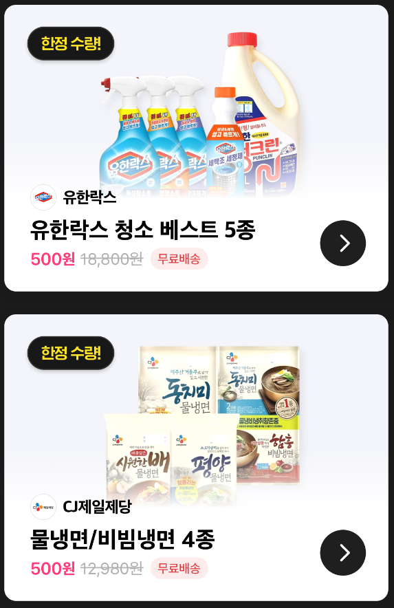 신규가입 후 앱을 다운받으면 단돈 500원으로 다양하게 준비되어 있는 생필품 1가지를