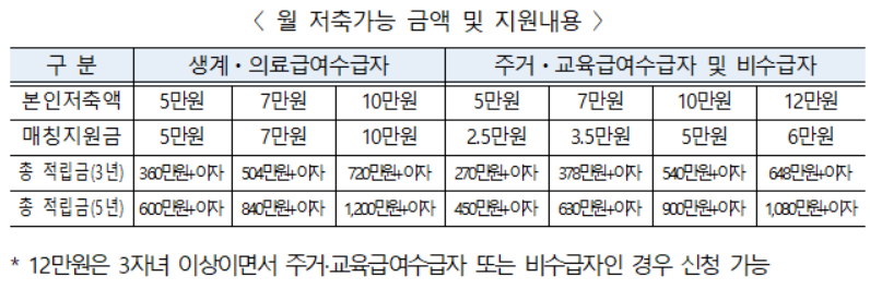 5만 원/7만 원/10만 원/12만 원(비수급, 3자녀) 중 선택