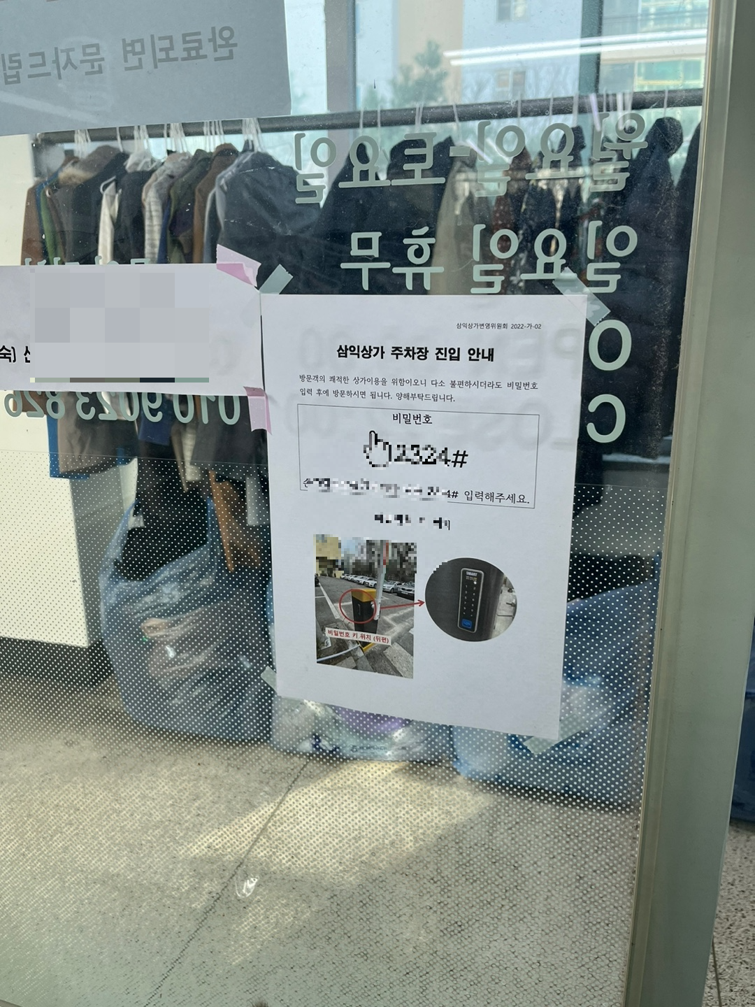 세탁소 입구부터 세탁물들이 쌓여 있었어요.