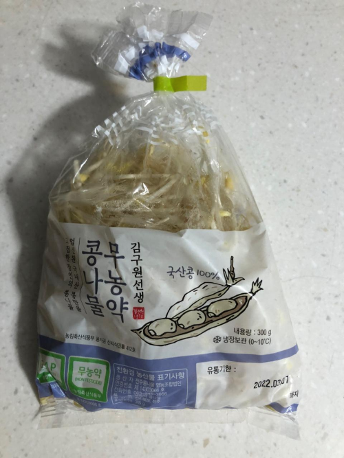 마켓 컬리의 국내산 무농약 콩나물입니다.