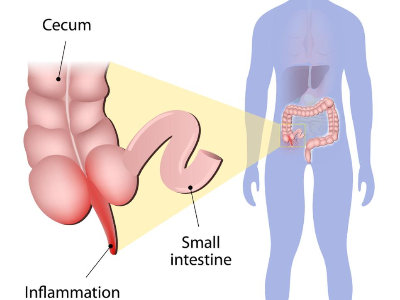 맹장염의 원인은 여러 가지가 있지만, 충수 내부가 막히면서 발생하게 된다.
