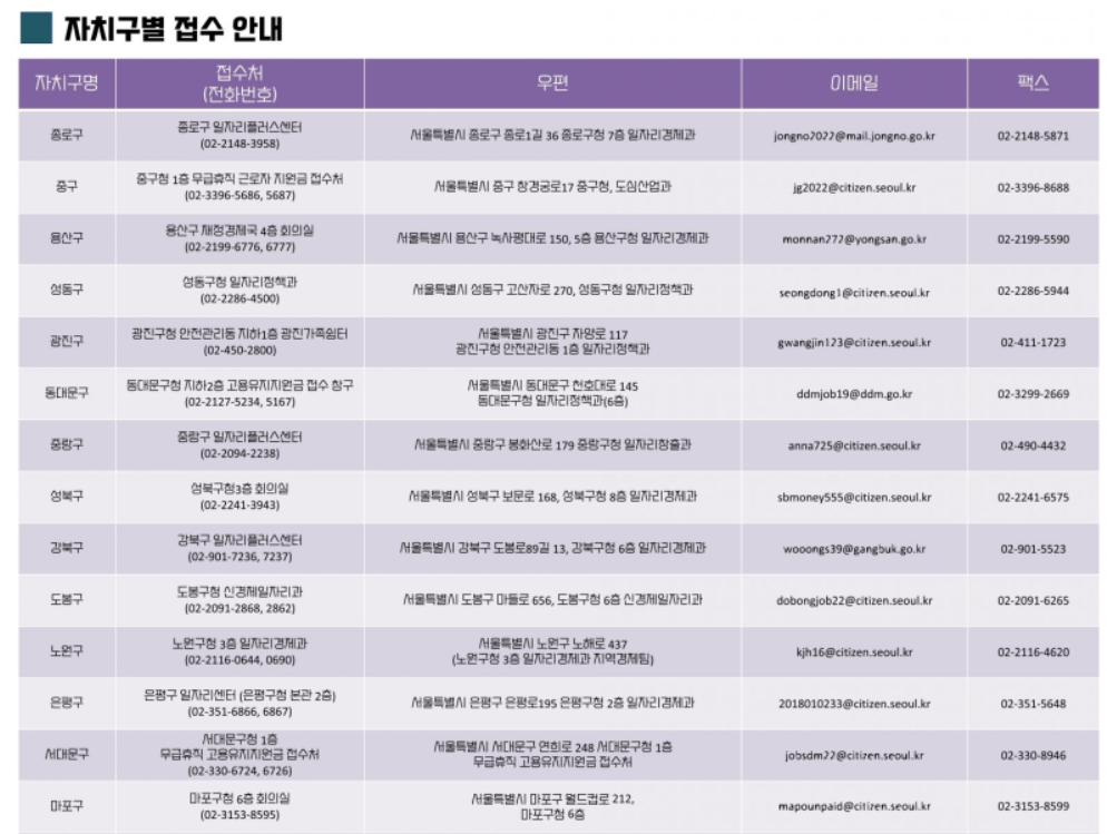 예정이다. 서울시는 총 150억 원을 투입해 최소 1만 명에게 지원하는 것을 목표로 하고 있으며, 우선 지원 대상은 소상공인 및 조선. 여행. 관광. 숙박. 공연 등 특별고용지원업종 근로자이며 기업체를 최대 49명까지 신청이 가능하다.
