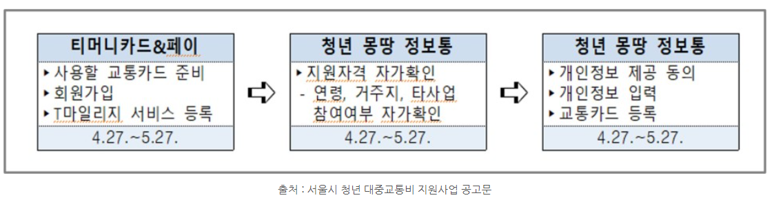 (모바일 티머니 포함)를 소지한 청년에 한하여 참여 가능하기 때문에, 티머니 교통카드가 없는 청년은