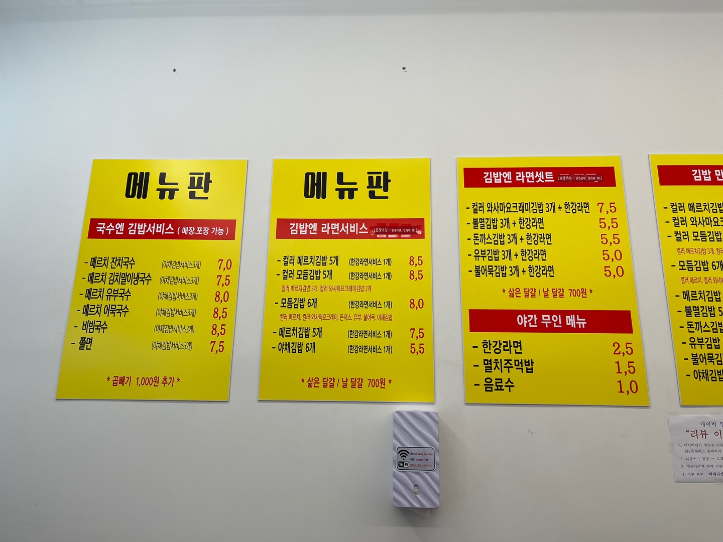 한강라면과 컬러김밥 셋트 가격도 참 좋았어요.