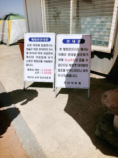 진산리 어촌계에서 입장료를 내면 관리하시는 분이 시간대를 알려주세요.