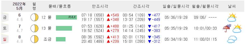 물때 보는법은 날짜마다 다르니 가시고자 하는 날짜를 확인하고 가세요!