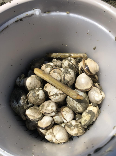 3통을 잡아왔어요. 동죽을 캐다보면 가~끔 큰 조개도 나왔는데, 그건 백합이래요.