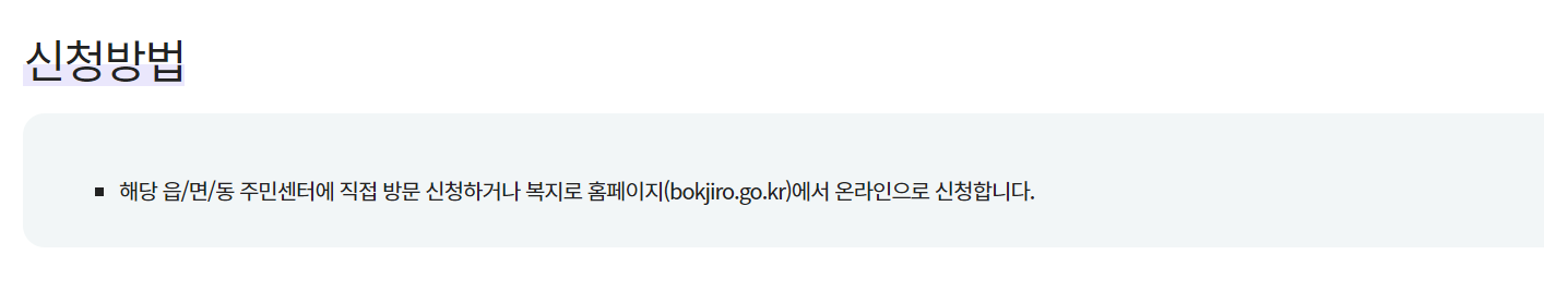 1. 온라인 신청 : 복지로 (www.bokjiro.go.kr)를 통한 온라인 신청