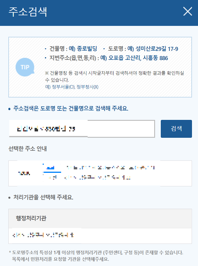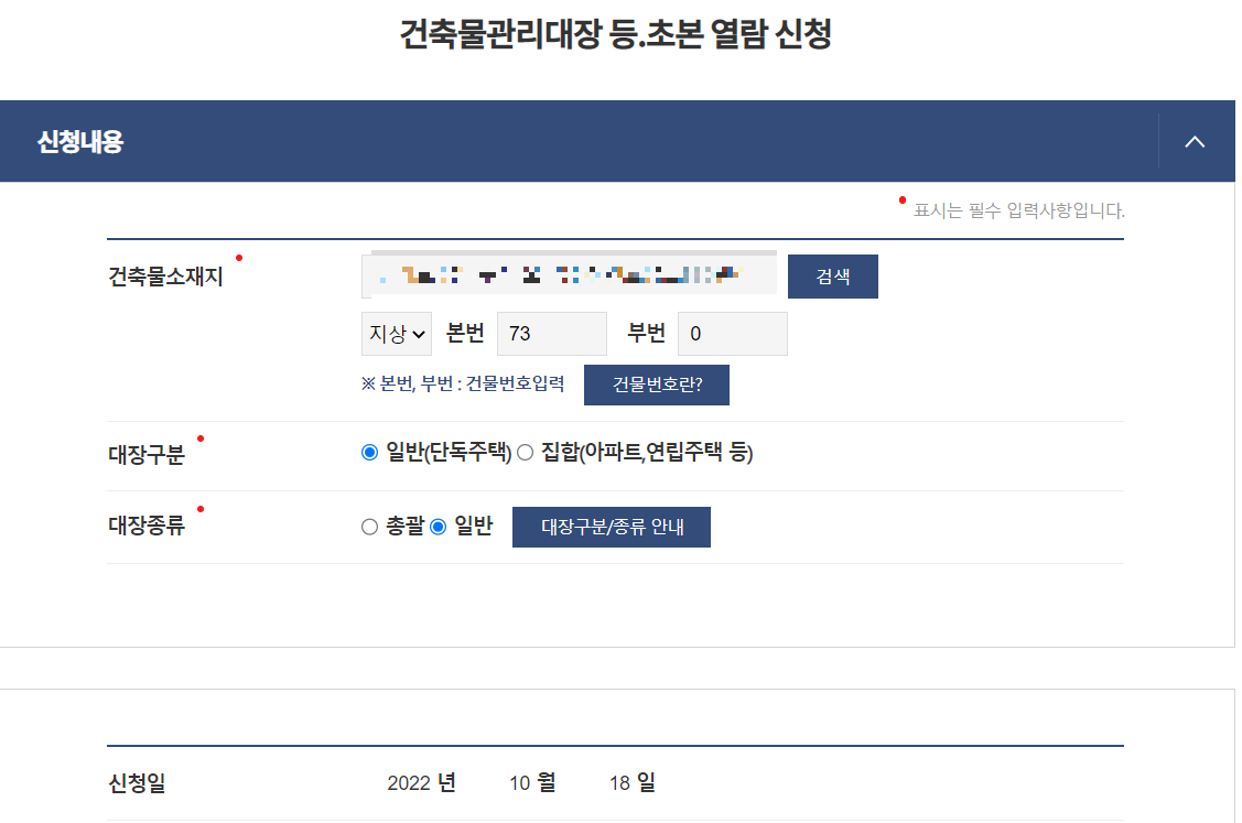 열람을 누르신 후 열람을 할 건축물의 주소를