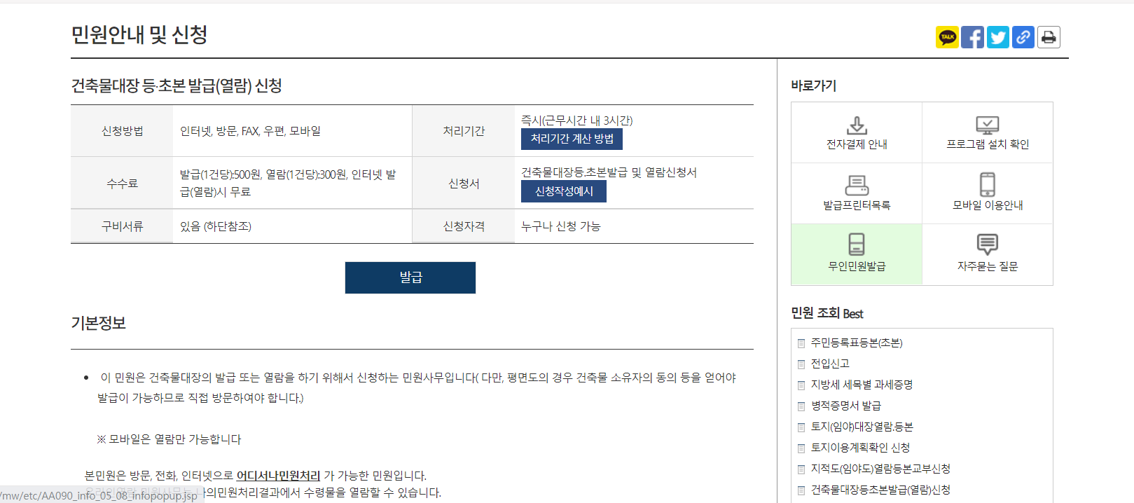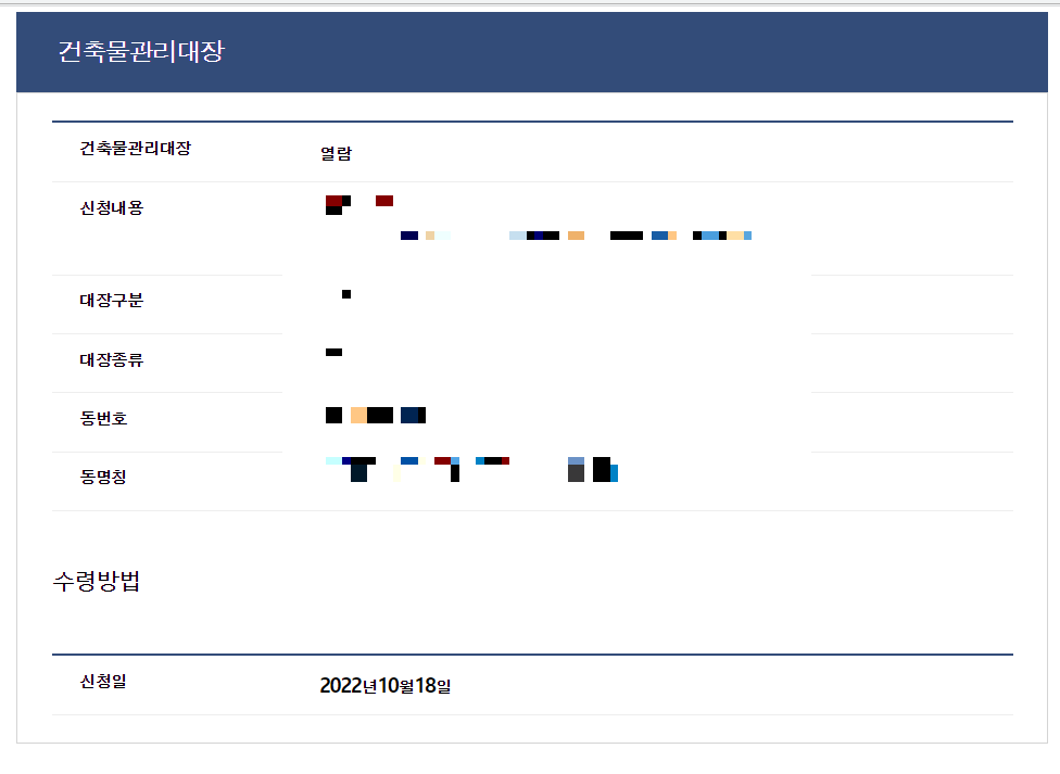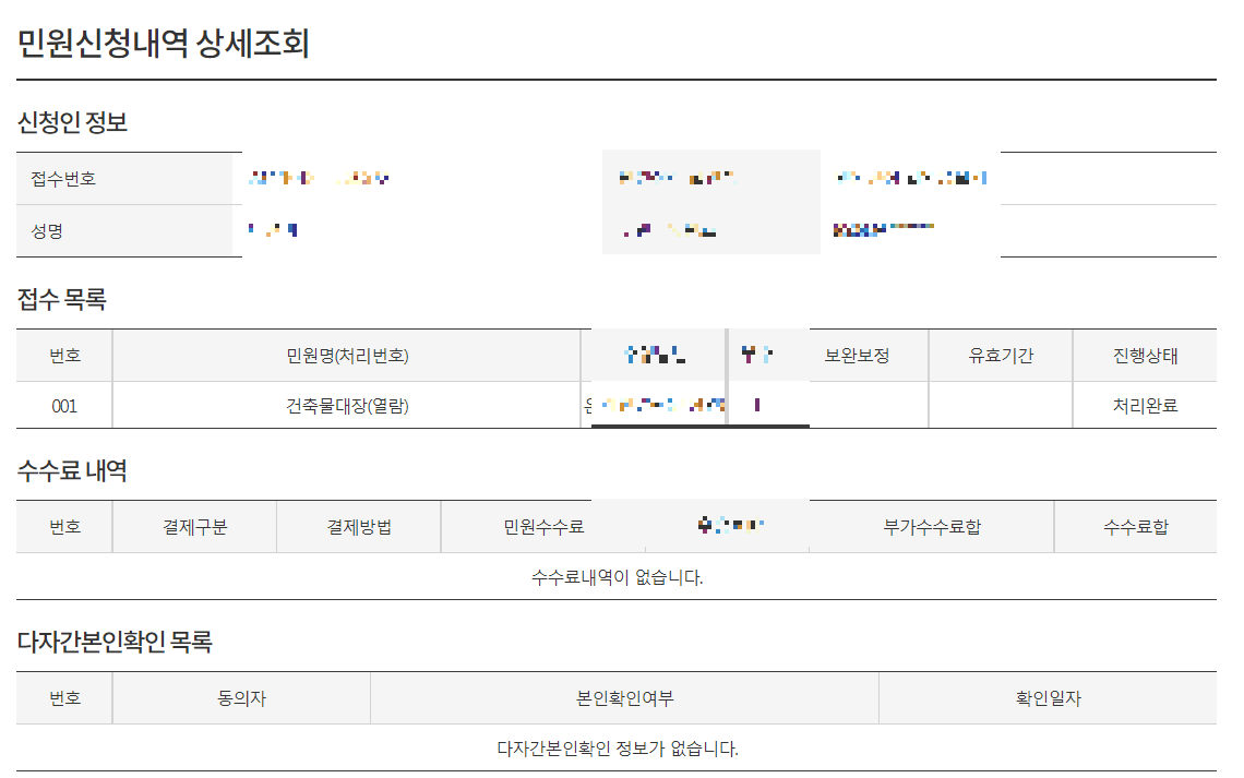 개인정보를 입력하면 건축물 대장을 발급할 것인지
