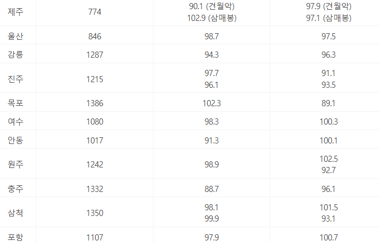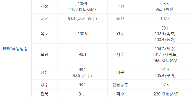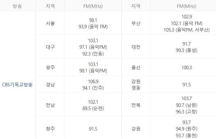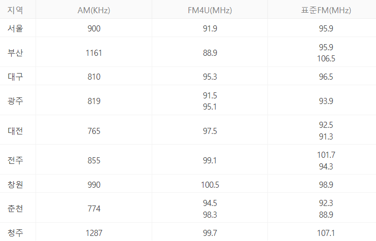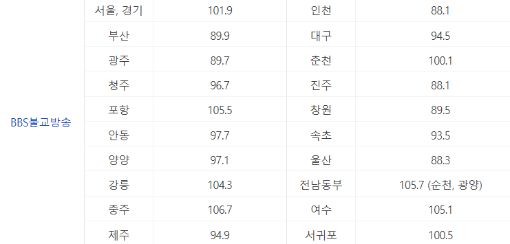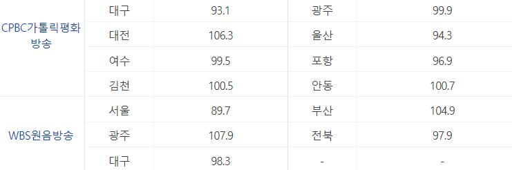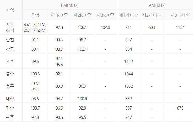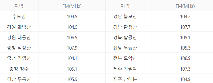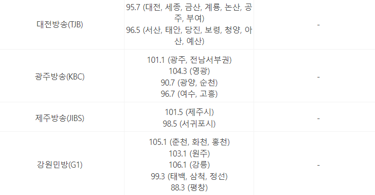그래서 오늘은 각 방송국별, 지역별 주파수와 문자참여를 할 수 있는