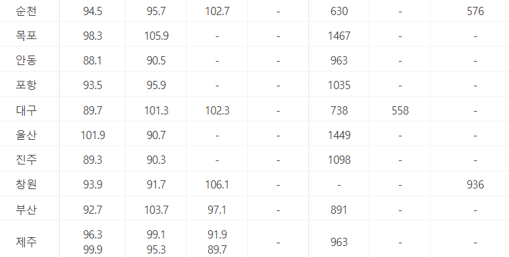 이 외에도 지역별로 문자번호가 다 다른데,