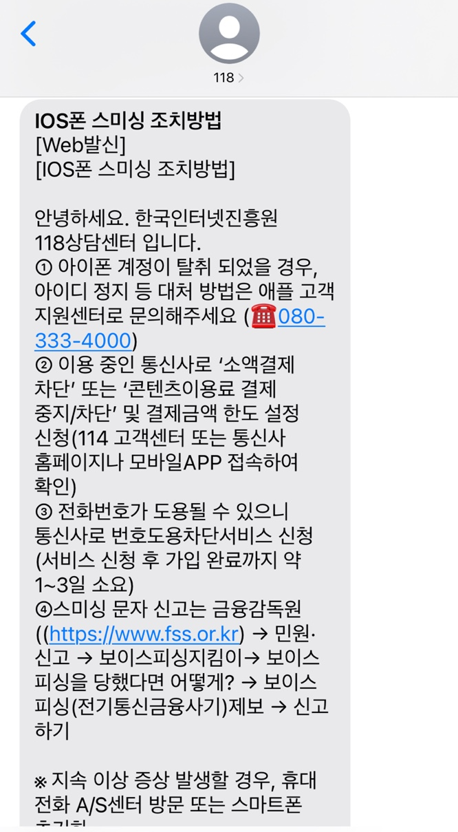 즉시 118(금융사기 통합신고대응센터)로 전화를 걸어