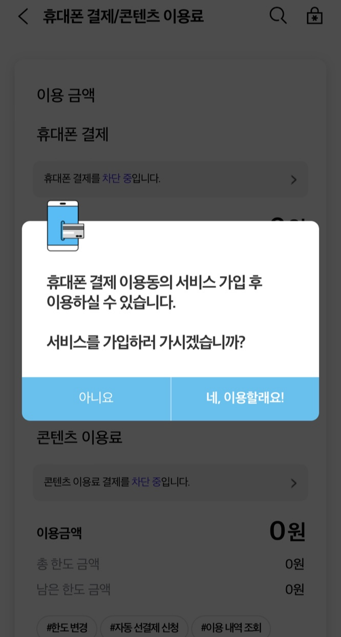 그래서 휴대폰 결제 시스템도 찾아서 차단시켰습니다.