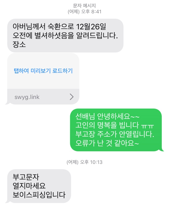 오늘은 어제 제가 겪은 부고장 스미싱에 관해서