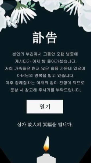부고장에는 어젯밤에 돌아가셨다고 나옵니다.