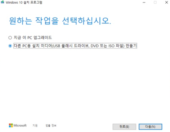 다른 PC용 설치 미디어(USB플래시 드라이브, DVD또는 ISO파일)만들기 를