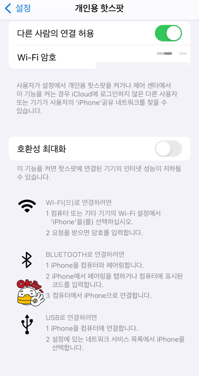 휴대폰 핫스팟 서비스를 이용하셔도