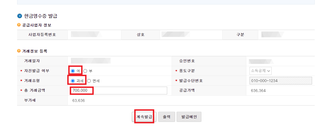 내용을 입력하면 계속발급을 눌러서 발급합니다.