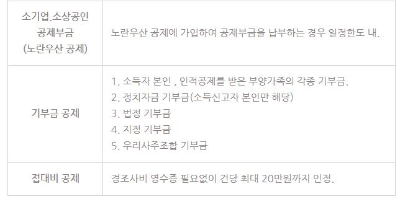 - 소기업. 소상공인 공제부금 (노란 우산 공제에 가입하여 공제부금을 납부하는 경우 일정 한도 내.)