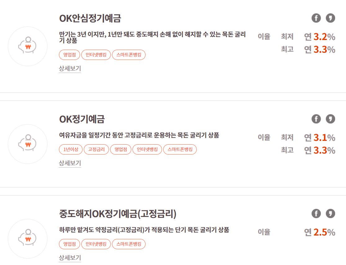 | 1 | OK저축은행 | OK e-읏통장 -500만원 까지 3.00% |